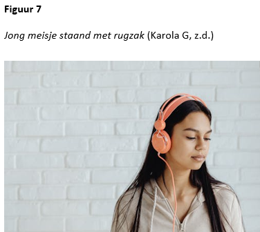 Karola G. (2021). Jong meisje staand met rugzak [Afbeelding]. Pexels. https://www.pexels.com/nl-nl/foto/vrouw-mevrouw-jas-muziek-8005504/